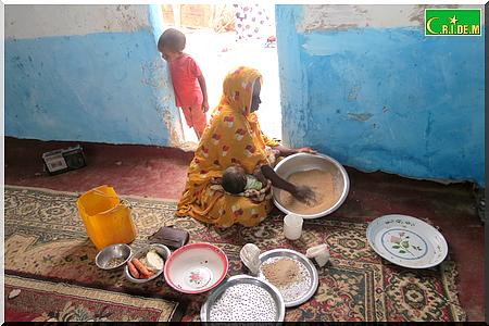 Ici, dans cette famille, on ne vit que des recettes de la mendicité de papa. Il y’a quelques années, en 2008, Ahmed Mahmoud Mohamed Elkory procédait au coffrage pour la construction d’une terrasse, lorsqu’il a cru assister au dernier jour de sa vie. En effet, les planches avaient lâché. Il y’eut des morts et des survivants, dont Ahmed Mahmoud Mohamed Elkory. Il s’en sortira avec l’incapacité de ne plus disposer des planches. Il réussira tout de même à construire deux chambres dont l’une qu’il partage avec toute sa famille.