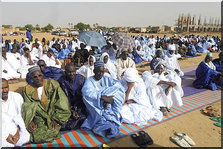 Hebdomadaire Mauritanoix - Des centaines de musulmans et fidèles de la confrérie tijania Nassiéne ont assisté ce lundi 28Juillet 2014 à la prière de la fête de l’Aid El Fitr « fête de Korité » à Boghé-Escale.