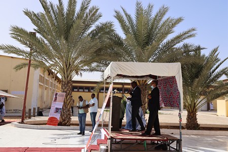 Cette présentation a été suivie par la présentation des bénéficiaires de la Formation Professionnelle aux autorités suivant les filières de prédilection des jeunes, la durée de la formation et la réalité du marché de l’offre et de la demande. Le lancement officiel de la Formation professionnelle a été fait par le Secrétaire Général du MAIEO qui se satisfasse de la mise en œuvre de ce projet d’une importance grandiose et bénéfique compte tenu des enjeux de la problématique avant de rappeler la disponibilité de l’Etat Mauritanien en général et de son ministère de manière spécifique à accompagner, et soutenir des initiatives pareilles.