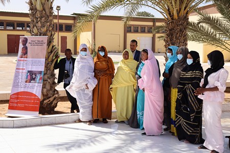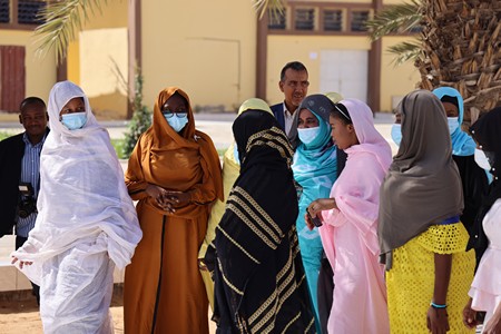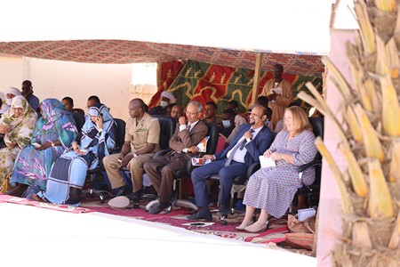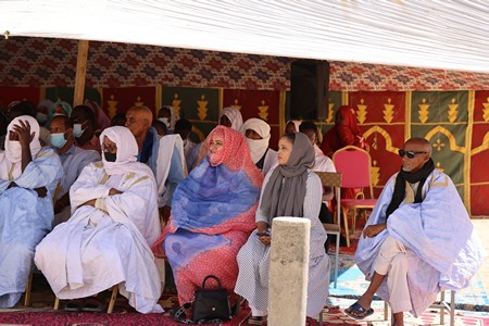 L’intervention de la chargée d’affaires a été suivie par les réalisations du projet par le Manager depuis le lancement au mois d’Octobre 2021 et qui se traduit par la participation à des travaux de recherches sur la problématique au travers du Baseline, de l’Etude comparative de la Mauritanie avec les Etats sahéliens environnants, les Evaluations communautaires/Diagnostic sur les connecteurs et les diviseurs, sans occulter les activités de renforcement de capacités des groupements féminins et des femmes leaders sur le plaidoyer et la communication et les sensibilisations des communautés sur la thématique du projet.
