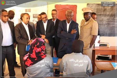 Durant les discussions ouvertes avec les directeurs et le personnel de ces établissements, le Ministre a souligné l’importance de doter les établissements d’équipements performants, actuels et adaptés à la réalité du terrain et a rassuré ces derniers quant à la disponibilité des ressources nécessaires pour ce faire. C’est la première fois que l’Etat met à la disposition de la formation professionnelle un budget d’investissement de 2 milliards d’ouguiya dédié aux équipements des écoles de l’intérieur.