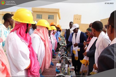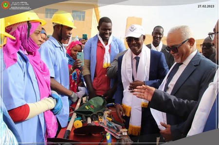 Le Ministre a également supervisé la remise de kits d’insertion au profit de 50 sortants de l’EETFP de Néma afin de leur apporter un appui à leur autonomisation. Cette activité s’inscrit dans le cadre de MEHENTI, programme de valorisation des métiers et professions. A travers ce programme, le Ministère de l’Emploi et de la Formation Professionnelle entend pallier le déséquilibre entre les opportunités offertes en matière d’emploi et le besoin en main d’œuvre.
