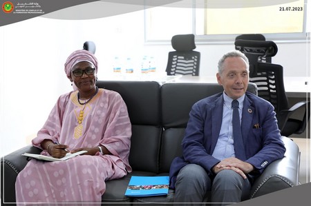 La Ministre de l’Emploi et de la Formation Professionnelle, Madame Zeinebou Ahmednah, a reçu en audience le Représentant de l’UNICEF en Mauritanie, Monsieur Marc Lucet.