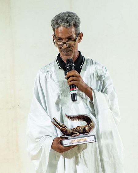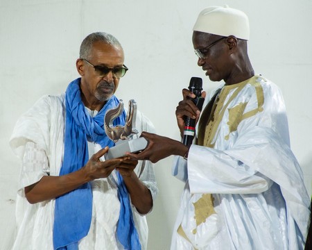 Le prix d’honneur lui a été remis par son ami et frère, le cinéaste mauritanien Abderrahmane Sissako, dans une atmosphère empreinte d’émotion et de fraternité. Ce geste symbolique a été salué comme un moment unique et marquant de cette édition.